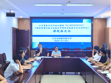 5.学期工作推进:8月30日,课题组开展“智慧实验室赋能理科教学创新”课题研究学期推进会,课题组全体成员及学校教科研骨干教师齐聚一堂,总结阶段性成果,部署下阶段研究重点,为深化初中理科实践教学改革注入新动能。要求各学科积极落实实践研究任务,计划以物理、化学、生物学科为主,数学与地理学科为辅,各开展一节依托智慧实验室环境的实验教学研究课,形成相应的教学资源和教学案例,升华形成研究论文,形成一定量的物化成果,为课题结题积累材料。