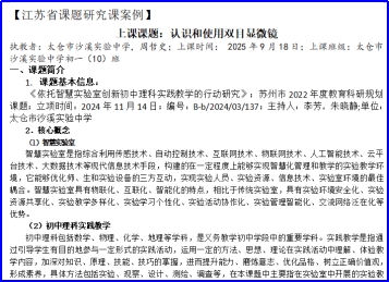 6.案例研究:活动结束后,课题组对课题研究课《认识与使用双目显微镜》开展案例研究,结合研究课的实施情况、课堂观察记录和专家意见,形成研究案例《认识与使用双目显微镜》。 |