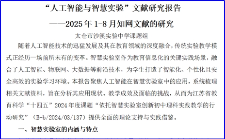 4.文献研究:9月2日,课题组对2025年1-8月的“人工智能+实验”主题的论文进行了文献研究,形成了《“人工智能与智慧实验”文献研究报告》,课题组围绕文献研究包括展开学习和研讨。