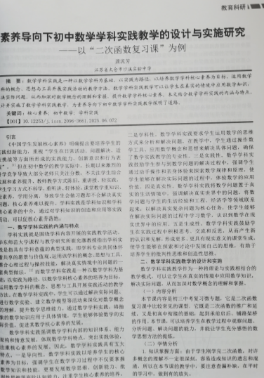 课题论文《素养导向下初中数学学科实践教学的设计与实施研究——以“二次函数复习课”为例》发表于《百科论坛》