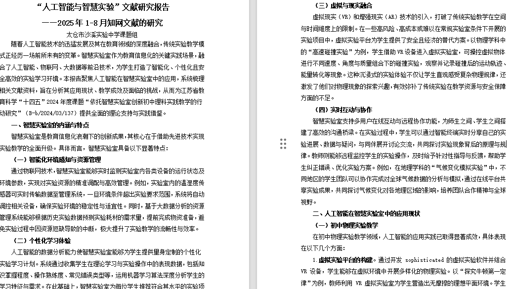 “人工智能与智慧实验”文献研究报告——2025年1-8月知网文献的研究