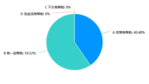 调查显示,65.5%的学生认为跨学科实践作业对学习生物有帮助,其中40.48%的学生表示“非常有帮助”,而59.52%的学生认为“有一定帮助”。这表明跨学科实践作业在生物学习中被广泛认可,且没有学生认为其无帮助。