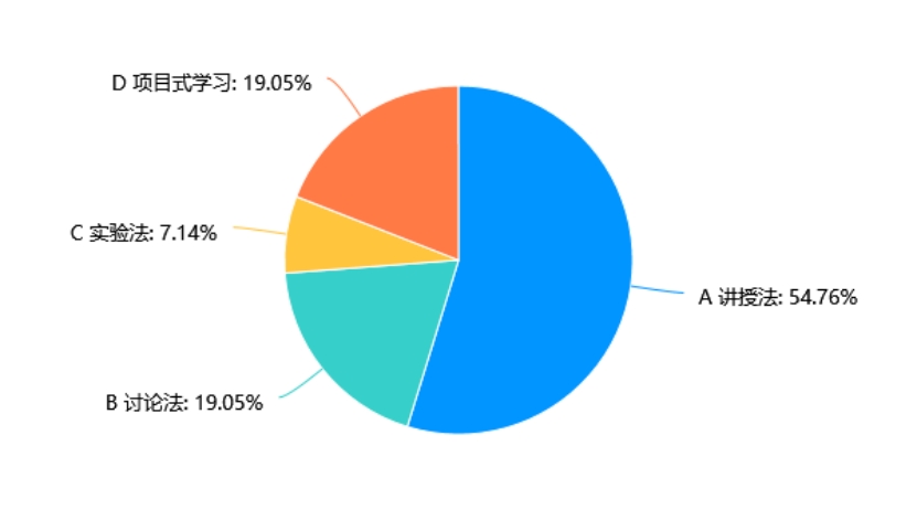 在调查中,54.76%的受访者选择了讲授法,根生蒂固的教学模式迫切需要改变。