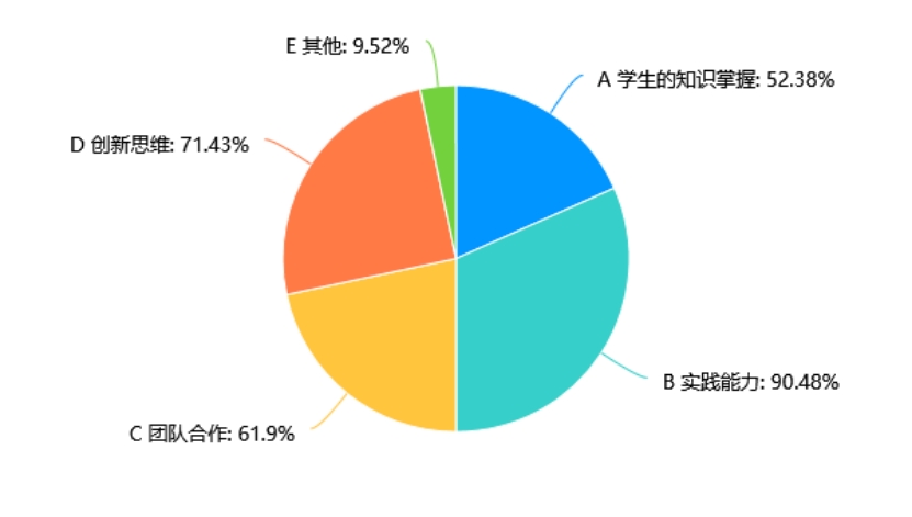 在所有选项中,90.48%的受访者认为实践能力是跨学科实践作业评价的重点,显示出对实践能力的高度重视。