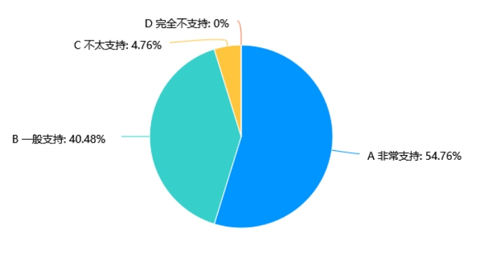 在调查中,54.76%的受访者选择了“非常支持”,而40.48%的受访者选择了“一般支持”,这表明大部分学生对学校在跨学科实践作业方面的支持持积极态度。
