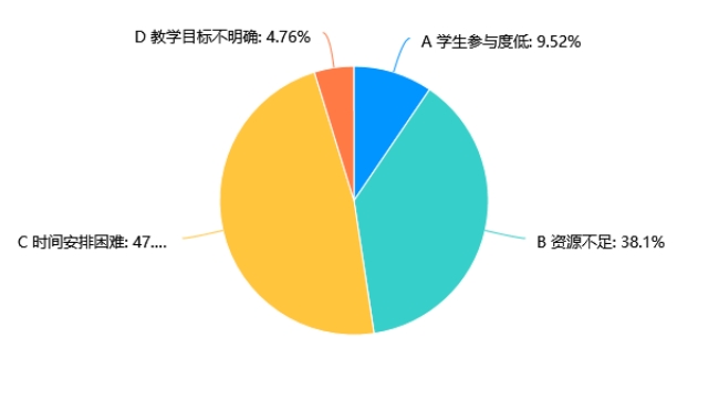 在实施跨学科实践作业时,47.62%的受访者认为时间安排困难是他们面临的最大挑战,显示出时间管理在跨学科项目中的重要性。