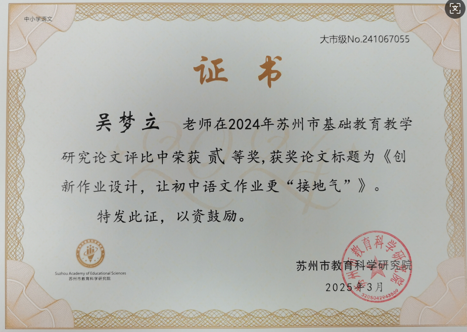 苏州市论文二等奖